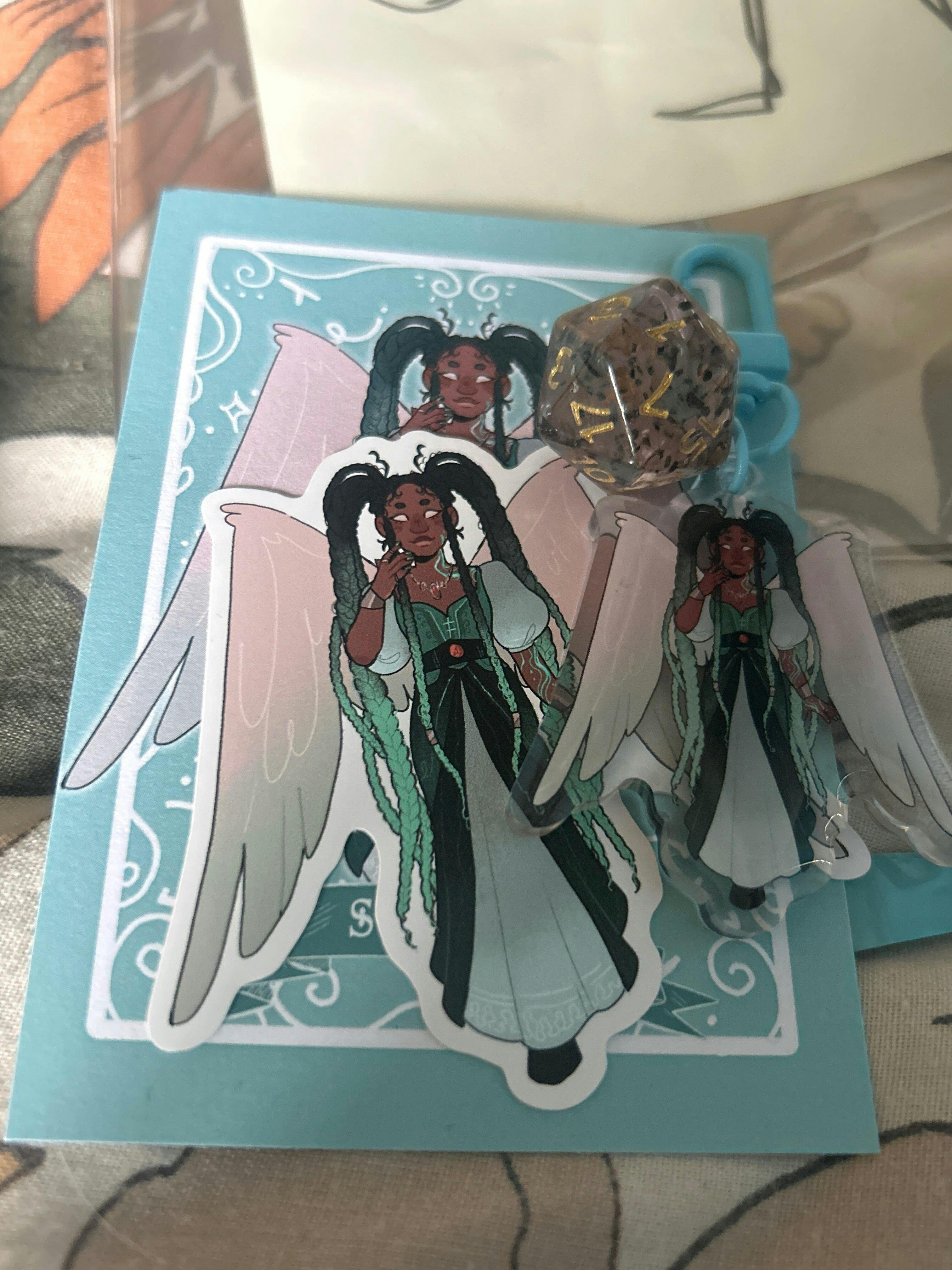 I got a this at epic con today in glasgow and ive opened her and she is beyond gorgeous, the art is amazing. I got sorcerer miku and she is just so beautiful, the keychain is really nice quality and clear on both sides. and the sticker is vibrant and the art card is so cute, the dice is just a basic simple D20 which i expected because this is a lot for the price. I came here straight away to see if i could them sepreately or if it was only the mystery bag, its sold out tho which i understand because YES. The only thing is I really want to get my friends their miku to line up with their character class, I don't know if you'd ever be open to selling individual keychains of the mikus but i'll be right here if you do!!